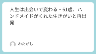 人生は出会いで変わる・61歳、ハンドメイドがくれた生きがいと再出発