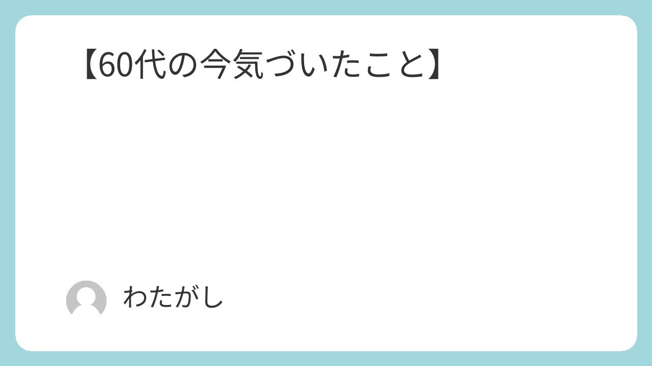 - 60代になって見えた現実と、心のズレ