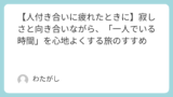 「もっと自分を大事にしていいんだよ。人の顔色ばかり見なくていい。あなたが笑顔でいることが、一番周りを幸せにするんだから。」
